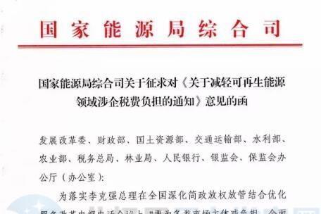 2017年9月14日【政策法规】国家能源局印发《关于减轻可再生能源领域涉企税费负担的通知》